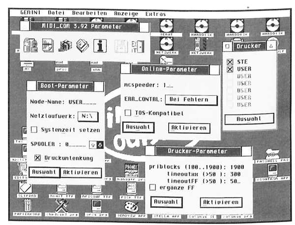 Nun, immer, wenn während der BOOT-Phase an der MIDI-Schnittstelle ein Byte ankommt, bleibt die Hardware in einem Zustand, die keine weiteren Interrupts der MIDI- und Tastatur-ACIA mehr zuläßt. Die Folge zeigt sich darin, dass keine Tatstatur-Eingaben oder Mausbewegungen mehr möglich sind. Das Programm MC_ RESET korrigiert diesen Zustand. Es sollte daher als ERSTES Programm im Autoordner gestartet werden. Außerdem noch MIDICOM.ACC. Das ist auch schon alles an Installation.