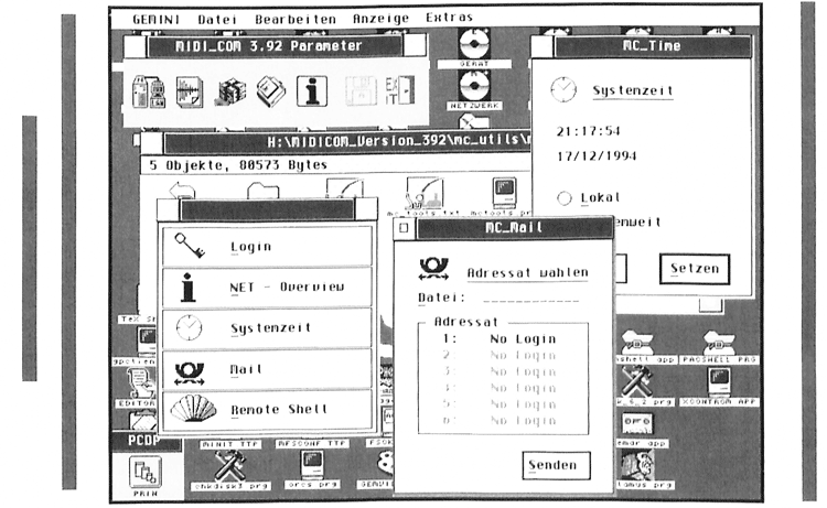 Es wird eine Diskette mit Handbuch ausgeliefert. Auf der Diskette befinden sich Midicom 3.92, das alte MC_ Talk und das neue MC_ Tool. Midicom hat sich von 3.91 nach erfreulich im Design gewandelt. Es unterstütz alle wichtige MiNT/MultiTOS-Spezifikationen inclusive Iconify. Alle Dialoge liegen in Fenstern und sind über Shortcuts bedienbar. Die Programmstabilität ist sehr hoch. Bisher ist mir weder Midicom 3.91 noch das neue 3.92 abgestürzt. Es ist außergewöhnlich stabil. Also rundum zu empfehlen.