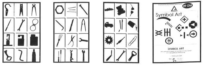 Auch mit Symbol Art erhĂ€lt der Kunde ein Grafikpaket, welches sich in diesem Falle aber nicht mit ClipArts beschĂ€ftigt, sondern verschiedene Symbole, teils abstrakt, in verschiedenen Schnitten und Helligkeitsstufen bietet. Nachdem die Symbole den Fantasien des Grafikers Michael Birke entsprungen sind, scheinen viele dieser Grafiken einen bestimmten Zweck zu verfolgen, doch anhand der mitgelieferten Beispiele erkennt man schnell, dass sich ausgezeichnete und individuelle Briefbögen, Visitenkarten usw. gestalten lassen. Auch bei Symbol Art erhĂ€lt der Kunde eine BroschĂŒre mit den darin aufgelisteten Grafiken, so dass das Suchen erheblich vereinfacht wird. Schade, dass die mitgelieferte BroschĂŒre nicht mittig geheftet worden ist. Dies ist eine Kleinigkeit, die eine lose BlĂ€ttersammlung leicht verhindern könnte. Der Preis betrĂ€gt DM 89.