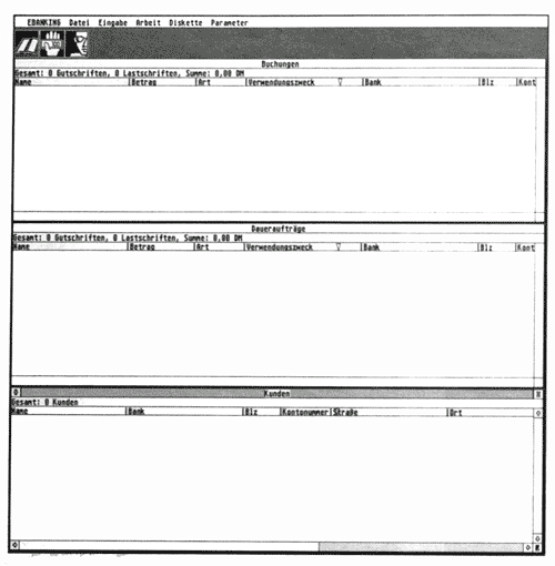 Das Angebot der Banken, o.g. Buchungen auch per Diskette zu erfüllen, besteht im Grunde genommen schon seit mehreren Jahren und wird bislang fast ausschließlich von Firmen genutzt. Aber auch der Privatanwender erhält Zugang zu diesem System. Ein entsprechender Antrag muß bei der jeweiligen Geschäftsniederlassung der Bank schriftlich eingereicht werden. Nach Überprüfung der Daten erhält der Antragsteller einen Vertrag, in dem er explizit versichert, das ihm entgegengebrachte Vertrauen in keiner Weise zu mißbrauchen. Anschließend wird er gebeten, eine Probediskette mit einer "Pseudo-Buchung" einzureichen, damit die Bank überprüfen kann, ob die vom Kunden eingesetzte Software den Anforderungen des "E-Banking"- Standards entspricht. (in meinem Falle herrschte bei der Bank anscheinend so viel Betrieb, daß meine Probe-Buchung prompt eingesetzt wurde, ohne daß ich bis zu dem Zeitpunkt auch nur einen einzigen Vertrag unterschrieben hätte. Mein Testkunde, ein Freund, kann sich glücklich schätzen, daß ich anstatt 100.000.- DM nur 50.DM von seinem Konto abgebucht habe.) Genau hier kommt die Software der Firma "IDEART" zum Zuge: Während die Bank den PC-Besitzern in erster Linie unkomfortable DOS-Programme empfiehlt, kann sich der ATARI-User glücklich schätzen, sämtliche Geschäfte in Zukunft durch ein GEM-orientiertes und gut strukturiertes Programm tätigen zu können.
