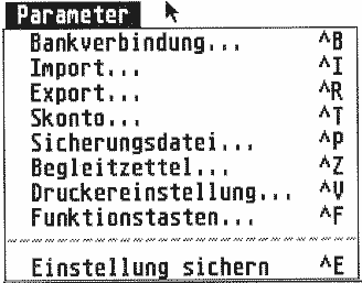 Der Ausschnitt aus der Parameter-Menüleiste verdeutlicht, wie vielfältig die Einstellungsmöglichkeiten der "ElectronicBanking-Software" sind.