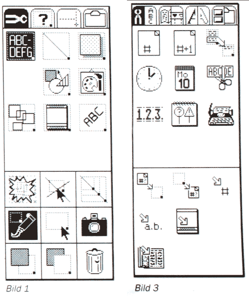 In der Standardeinstellung ist im Seitenfenster die Kneifzange oben links markiert (Bild 1). Darunter sehen Sie die verschiedenen Rahmentypen, die verwendet werden können. Hierzu gehören: Textrahmen, Linien, Flächen (Boxen, Kreise), Vektorgrafiken, Pixelgrafiken, Gruppenrahmen, Seitenteile, gedrehter Text.