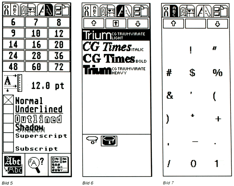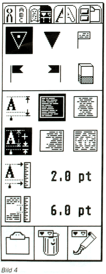 Achtung: Die Zeichenhöhe wird in Calamus mit "pt" angegeben, eine Bemaßungsbezeichnung aus dem DTP-Bereich. Zur Orientierung: 1 mm entspricht 3,175 pt. Die in der Grundeinstellung gewählte Zeichenhöhe von 12 pt entspricht also knapp 4 mm.