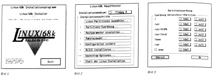 Die ALD wird mit einem GEM-konformen Installationsprogramm geliefert. Mittels dieses Programms wird unter dem normalen ATARI-Betriebssystem die Installation eines umfangreichen Linux/68k- vorbereitet und gestartet.