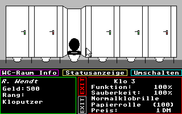 Aber nur wer die Notdurft seiner Kunden am geschicktesten ausnutzt schafft den langen Weg dorthin. Dazu kann der Spieler Preis und Ausrüstung seiner Klos verändern, was sich natürlich auf das „Geschäft“ auswirkt. Eine regelmäßige Wartung sollte genauso selbstverständlich sein wie eine gewisse Grundhygiene. Wer hier schlampen, bekommt vom Gesundheitsamt eins auf den (Klo-)Deckel.