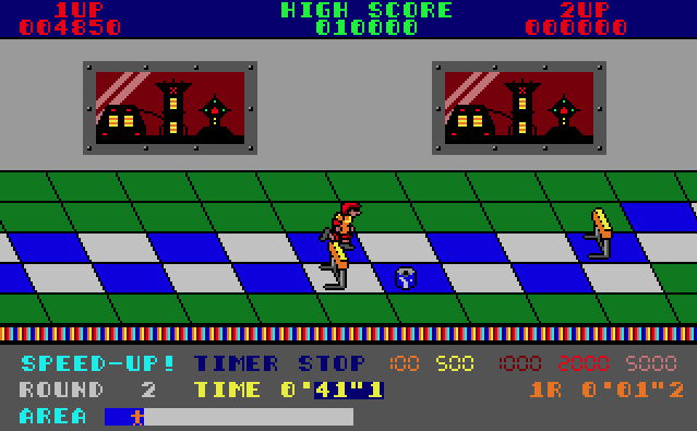 Erreicht man innerhalb der vorgegebenen Zeit nicht das Ziel, ist das Spiel vorbei. HÀlt man das Limit dagegen ein, wird die verbleibende Zeit gutgeschrieben. Als Gag steht die Spielfigur dann einige Sekunden keuchend im Ziel, bevor die nÀchste Runde beginnt. Der Ablauf ist immer derselbe, nur die Hindernisse nehmen stÀndig zu. Ab der vierten Runde wird es besonders schwierig. Nun kommt man nur noch mit viel Training und Geschick weiter.