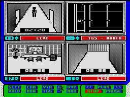 Alle Monitore lassen sich anschalten. Wahlweise kann man nun einige Videoaufzeichnungen ansehen, eine Kamera zur Live-Überwachung aktivieren und einiges mehr. Schon hier ist eine gewisse Liebe zum Detail spürbar. Läßt man z.B. eine Aufzeichnung schneller vorlaufen, erscheinen sogar die typischen Streifen eines Videorecorders auf dem betreffenden Monitor.