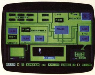 Ist der Fehler eingekreist, muß natürlich ein Ersatzteil besorgt werden. Dafür gibt es am unteren Bildschirmrand »Charlie Fixit’s Store«, einen Ersatzteil-Supermarkt. Dort führt man alle Einzelteile, die mit Spielpunkten bezahlt werden. Nach erfolgreichem Austausch ist der »Bug« beseitigt und das »Gotcha!«-Spiel kann weitergehen.