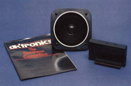 Die DKâtronics-Klangeinheit ist mit einem programmierbaren Sound-Chip ausgerĂŒstet: Dem integrierten Baustein AY-3-8912, einem Synthesizer im Mini-Format. Der Chip ist in ein kleines GehĂ€use eingebaut, das wie eine Speichererweiterung aussieht. Es wird auch genau wie eine solche Erweiterung auf den Expansion-Port gesteckt. An die Klangeinheit lĂ€Ăt sich, huckepack, ein weiteres Interface anschlieĂen. Zum Beispiel das Centronics-Drucker-Interface oder Joysticks etc. Neben dem Sound-Chip ist in dem GehĂ€use noch ein VerstĂ€rker eingebaut.