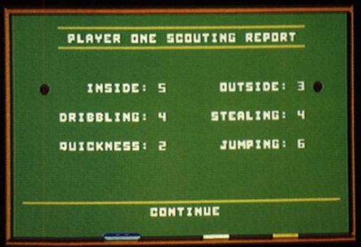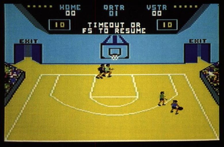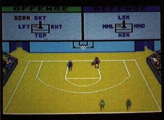Die gegnerische Abwehr muß durch ausgeklügeltes Paßspiel geknackt werden. Sie spielen einen Paß auf Ihren Partner, wenn Sie ohne zusätzliche Joystickbewegungen einfach auf den Feuerknopf drücken. Wird beim Knopfdruck der Joystick bewegt, spielen Sie keinen Paß, sondern werfen auf den Korb. Der Computer-Kollege beweist durchaus ein Auge für den freien Raum: Durch einen gekonnten Doppelpaß kann man sich freilaufen, erhält unmittelbar vor dem gegnerischen Korb den Ball wieder zugeworfen und kann nun ohne große Mühen punkten.