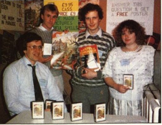 Die Größen der Software-Branche haben immer eine Happy-Computer im Arm. Jüngstes Beispiel: Die Adventure-Experten vom britischen Softwarehaus Level 9. Einträchtig gruppieren sich die Schöpfer von »Heavy on the Magik« um ein Exemplar ihres Leib- und Magenblatts. (L. Bunder/hl)