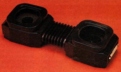 Sein Design ist ungewöhnlich: Die beiden Muffen aus Weichplastik, in die der Telefonhörer gequetscht werden muß, sind viereckig. Sie nehmen allerdings Telefonhörer, gleich welcher Form, ohne Schwierigkeiten auf und dichten sie gegen äußere Umwelteinflüsse gut ab. Das Mundstück des Telefons, in dem sich das Mikrofon befindet, sichert zusätzlich ein Schaumstoff ring. Das dient der zusätzlichen Datensicherheit, da der Hitrans 300 nur beim Empfang induktiv arbeitet. Daten sendet er ganz gewöhnlich, indem er sie in Töne umwandelt und über die Telefonleitung schickt. Der Empfang geschieht hingegen induktiv. Dabei wird nicht der Schall, der aus dem Hörer kommt umgesetzt, sondern die magnetischen Schwingungen, die vom Lautsprecher des Telefonhörers ausgehen, werden mit einer Spule aufgenommen und wieder in (vom Computer verstellbare) Stromimpulse umgesetzt.