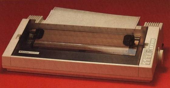 Der Papiereinzug ist sehr einfach und Dank des Hebels am Handrad ohne großartiges Fummeln erledigt. Die durchsichtige Abdeckung ist in der Mitte zweigeteilt und läßt sich je nach Wunsch einzeln zurückklappen. Die Klemmen der Stachel walzen für das randgelochte Papier sind zwar etwas wackelig, funktionierten jedoch anstandslos. Durchdacht ist die Verbreiterung dieser Halterung, durch die auch Endlospapier einwandfrei geführt wird.