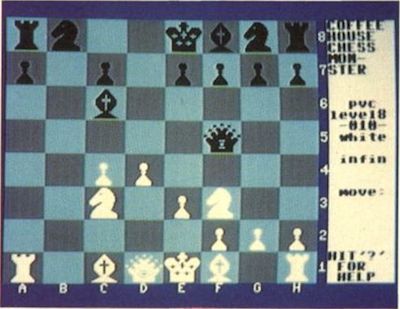 Als Bonbon gibt es zum Tutor noch ein richtiges Schachprogramm, an dem man seine neuen Kenntnisse erproben kann. Das Programm trägt den furchterregenden Namen »Kaffeehaus-Monster«. Dahinter verbirgt sich aber kein figurenfressendes Ungetüm, sondern nur ein reguläres Schachprogramm, das genau wie beim Tutor nur die 2D-Darstel-lung aus der Vogelperspektive verwendet. Es existieren acht Spielstärken. Darunter befinden sich zwei spezielle Level. Der eine spielt Blitzschach, bei dem jeder Spieler maximal fünf Minuten Zeit für die gesamte Partie hat. Der andere nennt sich »Infinite«, was aber nicht heißt, daß sich das Programm für alle Ewigkeit verabschiedet, sondern nur, daß der Computer so lange sucht, bis er den besten Zug gefunden hat. Dieser Modus ist besonders beim Briefschach hilfreich. Durch Tastendruck kann man den Computer aus dem langen Nachdenken auch herausreißen. Der Computer führt dann den besten Zug aus, den er bis dorthin gefunden hat. Man muß aber nicht unbedingt gegen den Computer antreten, sondern kann auch den Computer gegen sich selbst kämpfen lassen oder mit einem Freund am Bildschirm spielen. Dieses hat aber nur den Vorteil, daß der Computer unmögliche Züge verhindert, was so manchen Streit bei der Regelauslegung vermeiden hilft. Ansonsten ist das Spielen mit richtigen Figuren vorzuziehen, allein weil nach unseren Erfahrungen am Bildschirm nicht die richtige Atmosphäre aufkommt.