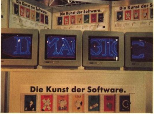 Application Systems zeigte eine neue Version des verbreiteten Megamax C. Diese bietet nun eine sehr leicht zu bedienende Benutzeroberfläche. Knüller an diesem Stand war »Imagine« (Bild 4). Es bietet weitreichende Effekte zur Präsentation von Computergrafik mit reizvollen Tricks beim Überblenden und Abspielen von Kurzfilmen. Außerdem lassen sich über MIDI bis zu 256 STs und ebensoviele Bildschirme miteinander synchronisieren, um beispielsweise eine Multivisions-wand aufzubauen. Preis und Erscheinungstermin standen noch nicht fest.