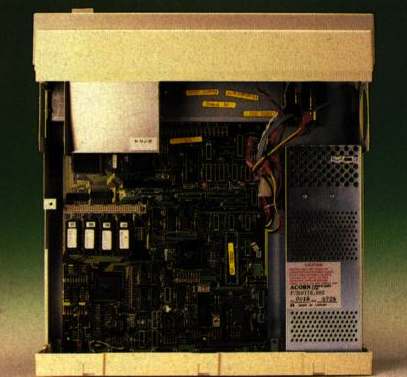 Im Gehäuse des Archimedes ist noch reichlich Platz. Die großen Brüder des Archimedes 310 haben intern Platz für zwei Steckkarten, die ähnlich arbeiten wie die Erweiterungskarte beim Amiga 2000.