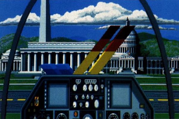 Anflug auf das Amiga-Symbol vor der Kulisse Washington