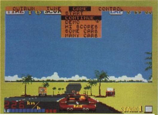 Da wären zum einen die beiden Autorenn-Spielhallen-Umsetzungen Outrun und Buggy Boy zu nennen. Outrun (Test in Happy 3/88) bietet auf dem ST wesentlich schöner gezeichnete Grafik als in der C 64-Version. Der 3D-Effekt ist hier annehmbar schnell, obwohl immer noch nicht ganz flüssig. In Pull-Down-Menüs kann man die Schwierigkeit des Spiels leicht variieren. Die Meinungen gingen in der Redaktion weit auseinander. Einige sprachen Outrun auf dem ST jeden Spielwitz ab, während andere gerne immer wieder einige Runden gefahren sind. Einig waren wir uns aber in jedem Fall, daß langfristig Outrun ein eher langweiliges Spiel ist, da sich recht wenig ändert.