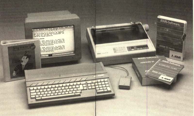 Wem das gesamte System zu teuer ist, der kann zum Beispiel an der Hardware einiges einsparen, wenn er statt einem 1040 STF einen 520 STM mit einem doppelseitigem Diskettenlaufwerk und Monitor SM 124 kauft. Der Preis liegt dann bei rund 1200 Mark. Ein preiswerter Drucker ist der Präsident 6320. Für rund 400 Mark bildet dieser 9-Nadel-Drucker eine ideale Ergänzung zum ST. Als Textverarbeitung bietet sich nur 1st Word Plus an. Hier sollte man auf keinen Fall sparen. Verzichten kann man anfangs auf Signum. Denn alles, was man mit Signum schreiben könnte, kann man auch mit 1st Word schreiben. Allerdings ist die Druckqualität nicht so gut. Als Dateiverwaltung kann man Adimens ST nicht verwenden, da der Speicher des 520 STM nicht ausreicht. Die Alternative ist Datamat ST. Es ist nicht programmierbar und hat leider einen Kopierschutz, ist aber gut zu gebrauchen. Vor allem kostet es nur knapp 100 Mark. Sind Sie beim Programmieren nicht auf Pascal festgelegt, dann verwenden Sie einfach Omikron-Basic, einer der leistungsfähigsten Basic-Dialekte, der jedem ST beiliegt.