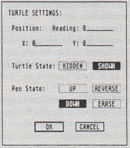 Auch bei dem Turtle-Menü erscheint eine Dialog-Box mit verschiedenen Auswahlmöglichkeiten zur Steuerung des Schildkrötensymbols.