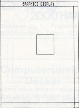 : Für die Grafik-Fenster reserviert LOGO normalerweise einen bestimmten Bereich. So kann das Grafik-Display durch ein anderes Fenster verdeckt werden, ohne daß dadurch die dargestellte Grafik verlorengeht. Dieser Puffer kann beliebig oft ein- und ausgeschaltet werden.
