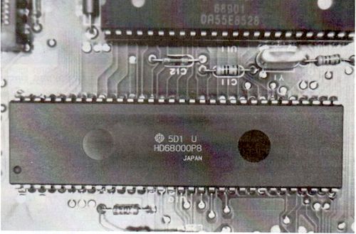 Der Herz des ganzen Systems, ist der von Motorola entwickelte 68 000 Mikroprozessor. Er wird als einer der leistungsfähigsten Prozessoren der neuen 16 Bit Generation bezeichnet. Das alles ist einerseits auf die hohe Taktfrequenz von 8 MHz und andererseits auf seine 16/32 Bit Struktur zurückzuführen. Durch die großzügig angelegte Registerzahl kann bei der Datenverarbeitung der Zugriff auf die externen RAM-Speicher eingeschränkt werden. Dies erhöht die Arbeitsgeschwindigkeit enorm. Ein weiterer Pluspunkt des 68 000 Prozessors ist die hohe Anzahl an Maschinenbefehle, die man intern implementiert hat. Das kommt dem Anwender hilfreich entgegen. Der Prozessor steuert und überwacht fast alle Abläufe im Rechner.
