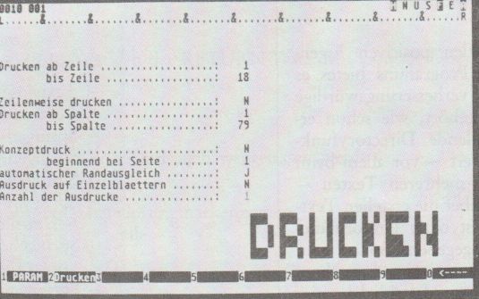 Auch das Druckmenü bietet einige Vielfalt von Einstellmöglichkeiten. Der Text kann stückweise oder spaltenweise ausgedruckt werden. Ebenso kann man beim Ausdruck den gesamten Text einrücken lassen, was bei gelochten Papier recht nützlich ist (Bild 8).