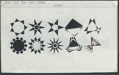 130 xpos =300:phi=3.1416/ecken*2.5 : gosub stern