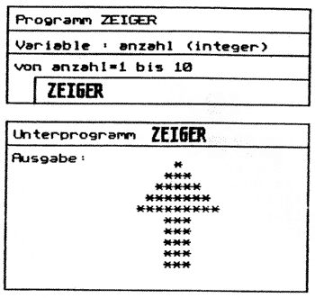 Listing 1 zeigt eine Prozedur (ZEIGER) ohne Parameter. Sie beinhaltet nur eine Reihe von WRITELN-Anweisungen und führt diese beim Aufruf durch das Hauptprogramm aus. Der Aufruf besteht hierbei nur aus dem Wort ZEIGER.