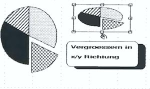 Als Füllmuster der entsprechenden Figuren stehen sämtliche bekannten Muster und die Möglichkeit zur Definition eines eigenen Musters zur Verfügung. Die gezeichneten Figuren können zusätzlich mit Schattierungen versehen werden, was einen gewissen räumlichen Effekt bewirkt. Die Linienform (Pfeil, rund oder eckig) und -Stärke sind, wie sämtliche anderen Funktionen, durch die Menüleiste anzuwählen und somit leicht bedienbar. Sämtliche Figuren können auch noch nachträglich mit anderen Füllmustern versehen werden.