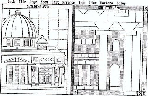 Wie der Name schon verrät, kann EASY-DRAW einen beliebigen Bildschirmausschnitt vergrößern. Das charakteristische hierbei ist, daß, im Gegensatz zu Malprogrammen, der gewählte Ausschnitt nichts an Feinheiten