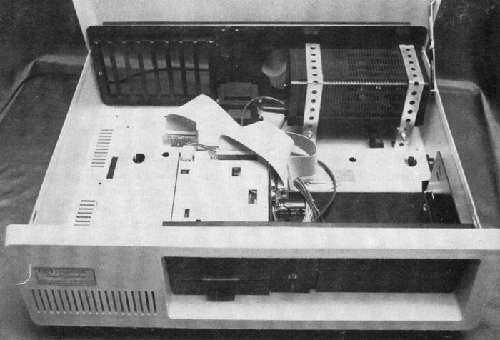 Das PC-Gehäuse besorgte ich mir von der Firma DWS-Computer (Wolkenburgstraße 10, 5463 Unkel). Es gleicht dem des IBM XT, bietet die Möglichkeit von 4 Einschüben und kostet ca. 130,- DM plus Postgebühren. Dieses Gehäuse hat den Vorteil, daß das Oberteil über zwei Scharniere jederzeit zu öffnen ist.