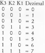 Jede 1 bedeutet ein gesetztes Bit. Wer sich ein wenig mit BinĂ€rzahlen auskennt, kann die Dezimalzahl direkt ablesen. Man kann aber auch einfach das Ergebnis mittels Tabelle schnell errechnen. Der Maximale Zahlenbereich fĂŒr diesen Parameter liegt also zwischen 0 und 63. Null schaltet somit alles aus. Der zweite Parameter wird ebenfalls nach gleichem Schema errechnet, nur diesmal liegen hier die Werte von 0 bis 7. Dieser Parameter gibt dem Chip die Anweisung fĂŒr welchen Kanal die HĂŒllkurvenform oder die LautstĂ€rke (bei SOUND-Befehl) gelten soll.
