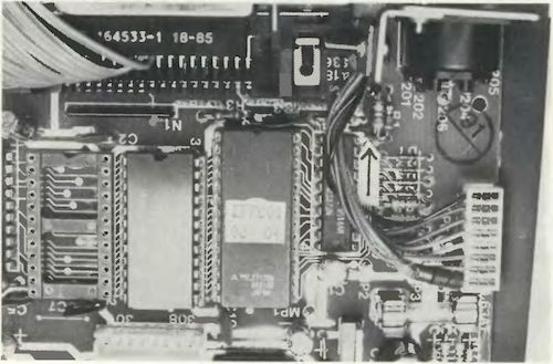 Da der ST keine „echte“ Centronics-Schnittstelle besitzt, kann es beim Anschluß passieren, daß sporadisch Zeichen doppelt oder dreifach angeschlagen werden. Dies liegt daran, daß der Soundchip, der die Signale für den parallelen Port erzeugt, nur ca. 1,6 mA (Milliampere) Strom liefert, von der Centronics-Norm aber 10 mA gefordert werden. Abhilfe schafft hier eine kleine Änderung in der Interface-Box. Dort ist der Widerstand R2 (Pull-Up-Widerstand der Strobe Leitung / 470 Ohm) gegen einen Widerstand mit 4,7 KOhm auszutauschen (siehe Bild 2 -Pfeil -). Außerdem empfiehlt ATARI (zum Schutz des Soundchips) den Austausch eines Widerstandnetzwerkes NI an den acht Datenleitungen. Anstelle des vorhandenen Netzwerkes mit 8x1 KOhm ist eines mit 8x3,3 KOhm zu verwenden. Sicher wäre aus technischer Sicht das Austauschen dieses Widerstandnetzwerkes (NI) in der Interface-Box zu empfehlen, die Praxis zeigt jedoch, daß der Rechner mit Pull-Up-Widerständen von 1 KOhm problemlos arbeitet. Folglich reicht es, nur den Widerstand R2 auszuwechseln. Nach dieser Änderung und mit einem richtigen Verbindungskabel (siehe Tabelle) druckt die Maschine einwandfrei. Das Besondere ist, daß die Maschine entweder an der parallelen-oder aber an der seriellen Schnittstelle des STs betrieben werden kann. Bei einer Druckgeschwindigkeit von 13 Zeichen pro Sekunde benötigt die Maschine im wegoptimierten und bidirektionalen Druck gute sechs Minuten für einen „normalen“ Brief (DIN A4, voll beschrieben). An dem tadellosen Schriftbild, welches sich durch den Austausch des Typenrades an jeden Geschmack anpassen läßt, gibt es natürlich nichts mehr auszusetzen.