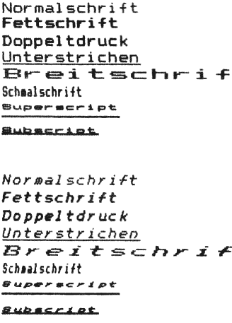 Neben dem Schriftbild sind natürlich auch die verfügbaren Schriftarten von großer Wichtigkeit. Wie schon erwähnt, wurde dem SMM804 keine NLQ-Schrift 'gelehrt’, was auch aufgrund der Konstruktion des verwendeten Druckkopfes kaum möglich ist.