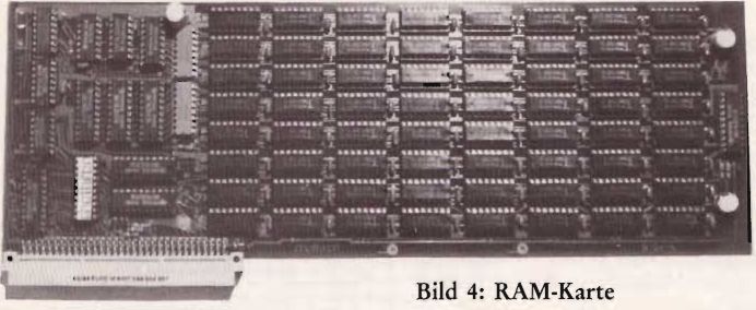 Die zwei MByte RAM-Karte ist wie die BUS-Karte und alle anderen als Bausatz oder fertig aufgebaut zu beziehen. Für den engagierten 'Elektronik-Freak' ist der Zusammenbau solch einer Karte problemlos. Dabei spart er wahrscheinlich ein wenig Geld. Der reine Anwender kauft sie betriebsfertig, so daß er sie nur einzustecken braucht.
