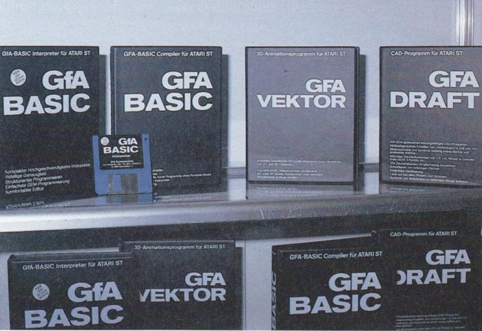 GFA Systemtechnik hatte viel zu zeigen, zum Beispiel eine Demo-Version des angekündigten Compilers für den GFA BASIC-Interpreter. Die Programme werden nach der Compilierung bis zu 20mal schneller. Dabei ist das Compilieren denkbar einfach: das GFA-BASIC-Programm einfach anklicken, und in einem Durchlauf entsteht das fertige Programm, das später direkt gestartet werden kann. Dadurch ist die Möglichkeit geschaffen worden, ernsthafte Programme in BASIC zu schreiben. Der Compiler wird Mitte Dezember lieferbar sein und 169 DM kosten.