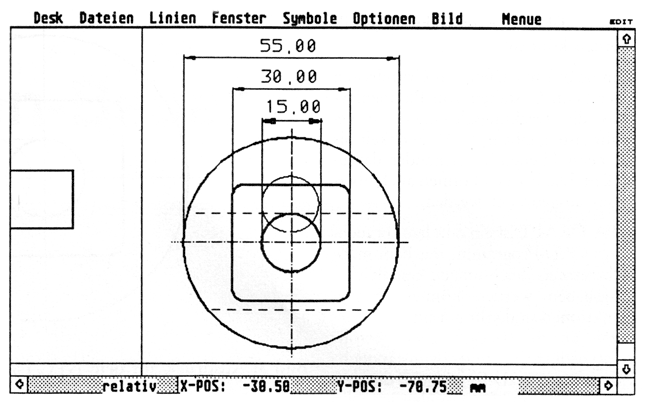 Die Elemente des Fensters können aber auch als SYMBOL abgespeichert werden. Es ist dann für spätere Zeichnungen in beliebiger Anzahl verfügbar. Die Funktionstasten können sogar mit diesen Symbolen belegt werden.