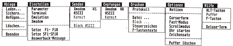 Alle Minimalfunktionen (siehe oben) kann Deluxe-Term auch (gleichzeitiges Senden und Empfangen von Dateien wurde nicht erprobt — wozu auch).
