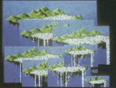 Zwischen den Bildschirmseiten kann jederzeit umgeschaltet werden. Über die Blockfunktion kann man kopieren oder verschieben (CUT & PASTE). Dadurch können Bibliotheken angelegt werden, die oft benutzte Bildsegmente und Objekte enthalten. Diese werden dann nur noch 'ausgeschnitten’ und in das gewünschte Bild eingefügt.