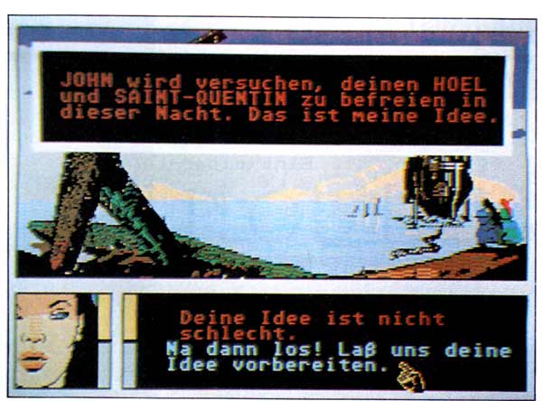 »Es gibt Abenteuer, die kann man nicht erzählen - man muß sie erleben.« Nach diesem Motto sind die Aktionen des Spiels gestaltet. Es ist nicht nötig (und sogar unmöglich), etwas auf der Tastatur einzugeben. Der Handlungsablauf entsteht vielmehr dadurch, daß zwischen bestimmten Personen ein Gespräch hergestellt wird. Die handelnden Figuren werden dazu aus dem Szenenbild geklickt und erscheinen daraufhin im Porträtfenster. Zwischen den Personen kann beliebig hin- und hergeschaltet werden, so daß es zu einem Gespräch oder zu einer Handlung kommt. Dabei ist vor allem der zeitliche Ablauf wichtig, der durch die Personenwahl beeinflußt wird. Von Zeit zu Zeit muß jedoch auch eine direkte Entscheidung getroffen werden. Dann stehen zwei Antworten zur Auswahl und nur eine führt zum Fortgang der Handlung.