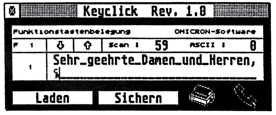 Alle Produkte sind Desk-Accessories. Sie stehen somit in jeder GEM-Anwendung ständig zur Verfügung. Nach dem Booten wird eine Tastaturbelegung geladen und kann sofort benutzt werden. Wenn eine Taste oder Tastenkombination gedrückt wird, die mit einem String belegt ist, dann wird dieser String an das laufende Programm übergeben, als wären alle Zeichen von Hand eingetippt worden. Man kann z. B. den Standardtext „Mit freundlichen Grüßen“ auf die Tastenkombination Shift + Fl legen und durch Betätigen beider Tasten in der Textverarbeitung abrufen. Dieses Verfahren funktioniert bei Ist Word Plus hervorragend und dürfte auch bei anderen Textverarbeitungen keine Probleme bereiten. Leider arbeitet keines der drei programme mit der neuen Textverarbeitung SIGNUM zusammen. Soviel zu den Gemeinsamkeiten der Programme.