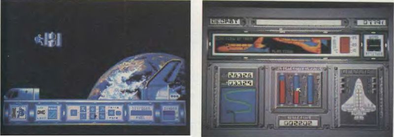 Wollten Sie nicht schon immer der Kommandant eines SPACE SHUTTLES sein? - jetzt haben Sie die Gelegenheit dazu. Ein defekter Kommunikations-Satellit soll aus dem Weltraum geborgen werden, doch bis dorthin ist es ein weiter Weg. Ihre Aufgaben und Einsatzgebiete sind verschiedenster Natur. Als erstes muß der Abflugpunkt bestimmt werden. Dabei werden ebenfalls die Wetterbedingungen (Wolkenbildung, Windstärke, Richtung) für den Start eingestellt.