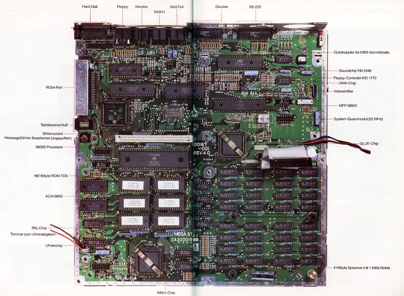 Wurde auf der CeBit dieses Jahres noch von einem Mega ST1 gesprochen, so ist dieses Modell nach den jüngsten Aussagen von Atari aus dem Programm gestrichen worden. Als einziger Vertreter der Ein-Megabyte-Klasse bleibt nur der 1040 STF, und als kleinstes Modell der ST-Serie wird weiterhin der 520 STM produziert. Neben diesen beiden Rechnern der „alten“ Generation liefert Atari die Mega-Modelle ST2 und ST4. Bei diesen neuen Modellen finden die modernen 1-Megabit-Speicherchips (RAMs) Verwendung. Der einzige Unterschied zwischen den beiden Modellen ist, daß beim ST2 die zweite RAM-Bank unbestückt ist, was bedeutet, daß 16 Speicherchips fehlen.