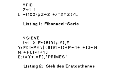 APL/68000 besteht aus einem âSupersetâ, einer Ubermenge, des APL.SV. Letzteres ist derzeit eine Art âIndustriestandardâ (made by IBM). Damit ist das APL des ST bestens fĂŒr BĂŒro-Anwendungen gerĂŒstet, wo meist KompatibilitĂ€t zu bestehender Software gefordert ist. Und APL selbst ist (nach Cobol und Fortran) der Industriestandard. Fragen Sie mal âBig Blueâ IBM! - âSupersetâ heiĂt: da ist mehr drin. Stimmt. Es ist etwa möglich, auch Textstrukturen zu sortieren. Die Kriterien sind beliebig. Die Funktionen âKomprimierenâ und âExpandierenâ sind erweitert: APL/68000 lĂ€Ăt als linkes Argument auch Integer-Elemente zu. FĂŒr das maĂstĂ€bliche VergröĂern/ Verkleinern von Bitmaps keine unwesentliche Erleichterung. Und neben dem âFormatâ-Befehl und der System-Funktion âQUAD-FMTâ gibt es eine Cobol-Ă€hnliche âALPFLAâ-Funktion, die fĂŒr zusĂ€tzlichen Komfort bei der Anzeige von Tabellen sorgt. Kommentare können am Ende jeder Funktionszeile stehen. Mehrere unabhĂ€ngige AusdrĂŒcke in einer Zeile sind möglich.