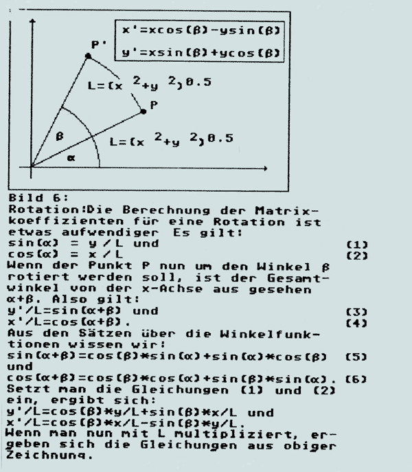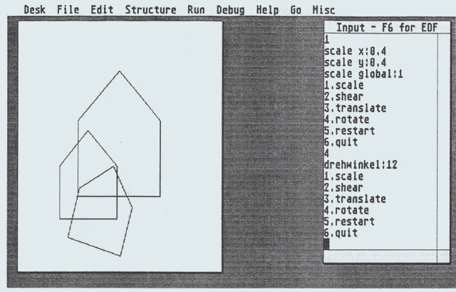 Diese Folge der Grafikserie möchte ich mit einem Programm abschließen, daß zum Ausprobieren der Transformationsmatrix dient. Es ist in Pascal geschrieben, verwendet aber keine Funktionen, die man nicht in GfA-oder Omikron-Basic simulieren könnte. Auch die Übersetzung nach C dürfte kein Problem sein.