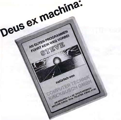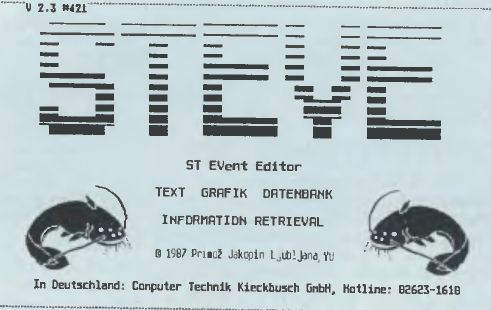 Es gibt in der Welt der Personalcomputer nur wenige Programme, von denen jederman sagt, man müsse sie gesehen haben. Den Flightsimulator von Subiogic zum Beispiel Oder eben Steve, den ST EVent Editor für den Atari ST. In aller Kürze: das ist eine Textverarbeitung so schnell wie Tempus, ein Dateiprogramm so komfortabel wie Datamat, ein Graphiktool so luxuriös wie Degas und ein Spelling-Checker, wie man ihn sich schon immer wünschte. All dies, zu einem Paket zusammengeschnürt, ist Steve.