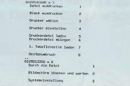 Auch die Ausgabemöglichkeiten sind großzügig ausgefallen, etwa so umfangreich, wie bei Adimens ST. Man kann ein Datenfeld in beliebiger oder fester Länge ausgeben, formatierte Übersichtstabellen erstellen, nur bestimmte Felder selektieren und auch die Datensätze durchgehend nummerieren. Sehr ungewöhnlich sind neben diesen Standardbefehlen einige Kommandos, die speziell auf das Texthandling zugeschnitten sind. So kann man etwa mit dem Befehl „Text zu Wortliste“ ein ganzes Textfile in eine Datenbankliste umformen. Nach dem Anwählen von „Vereinigung der Gleichen“ entfernt Steve alle doppelten Wörter. Schließlich sortiert man diese Liste und erhält ein alphabetisches Verzeichnis aller im Text verwendeten Worte, das nun entweder für ein Stichwortverzeichnis oder aber die Rechtschreibkorrektur eingesetzt werden kann. Schließlich gibt es auch hier einige exotische Kommandos, etwa „Rechts nach Links“, mit dem man ein Wort in seiner umgekehrten Schreibweise erhält (für inverse Wörterbücher) oder die Anagramme, bei denen jedes Wort alle Zeichen in alphabetischer Reihenfolge enthält (aus „Computer“ wird dann „CEMOPR-TU ). Es ist nicht leicht, an die Grenzen des Befehlsvorrates zu stoßen, weil Steve für alle Fälle gerüstet ist. Und daß sich die Dateiverwaltung nicht mit der Bezeichnung „relational“ schmücken darf, fällt bei normalen Anwendungen überhaupt nicht auf.