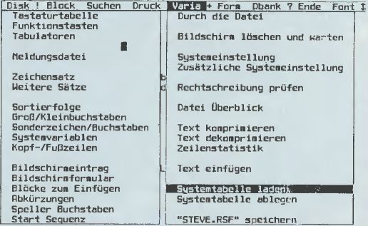 Bild 15: Die Systemtabellen im Überblick — jede einzelne kann individuell an gepaßt werden.