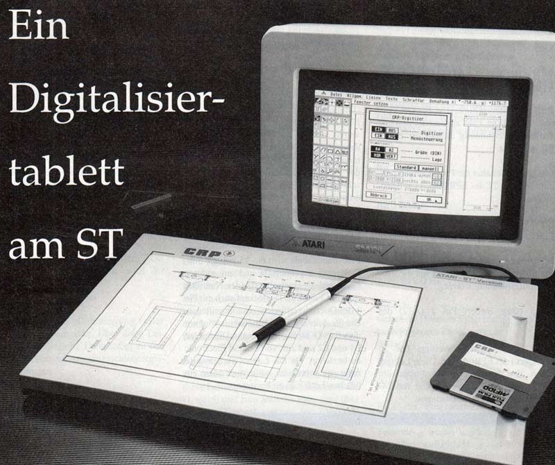 Unter dem Zeichen fortgeschrittener CAD-Anwendungen für den ST stehen nicht nur Neuerscheinungen auf dem Softwaresektor. auch Anbieter spezieller Peripheriegeräte passen sich dieser Entwicklung an. CRP-Koruk aus Konstanz hat bereits seit geraumer Zeit ein Digitalisiertablett für PCs im Angebot. Nun gibt es auch eine Version für den ST.